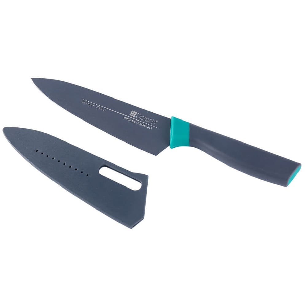 إذا بدك طقم لوح تقطيع مع سكين دورش يجمع بين الراحة والأمان، هيدا الخيار المثالي. لوح التقطيع حجم 28.8 سم للاستخدام اليومي، ومعه سكين شيف من الفولاذ الألماني X50CrMoV15 بصلابة HRC 55±2 لقصّ نظيف ودقيق. كمان في غطاء حماية للشفرة للتخزين الآمن، ومعه مسنّة (Honing Steel) لتحافظ على حدّة السكين لفترة أطول.