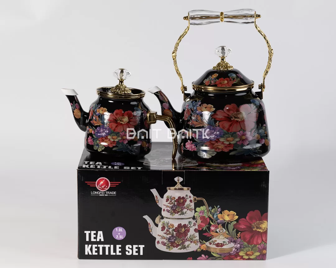 ومن ناحية أخرى، وجود قطعتين بحجمين مختلفين بيسهّل عليك تنظيم التقديم. بينما الغلاية الكبيرة مناسبة للكمية الأكبر، الغلاية الصغيرة عملية للتقديم السريع وإعادة التعبئة. في النهاية، طقم غلاية شاي أسود 2.5 لتر + 1 لتر بيجمع بين الشكل “الستايلش” والاستعمال العملي، لذلك هو كمان هدية مرتّبة ومميّزة.