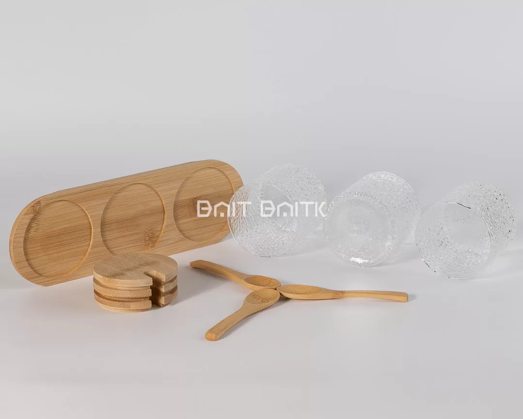 If you love a clean, elegant serving setup, this set is a perfect pick. The mix of glass and bamboo creates a warm, modern look, while the tray keeps everything together for an organized countertop.