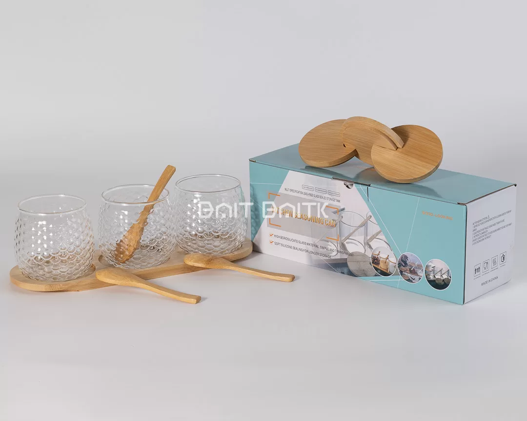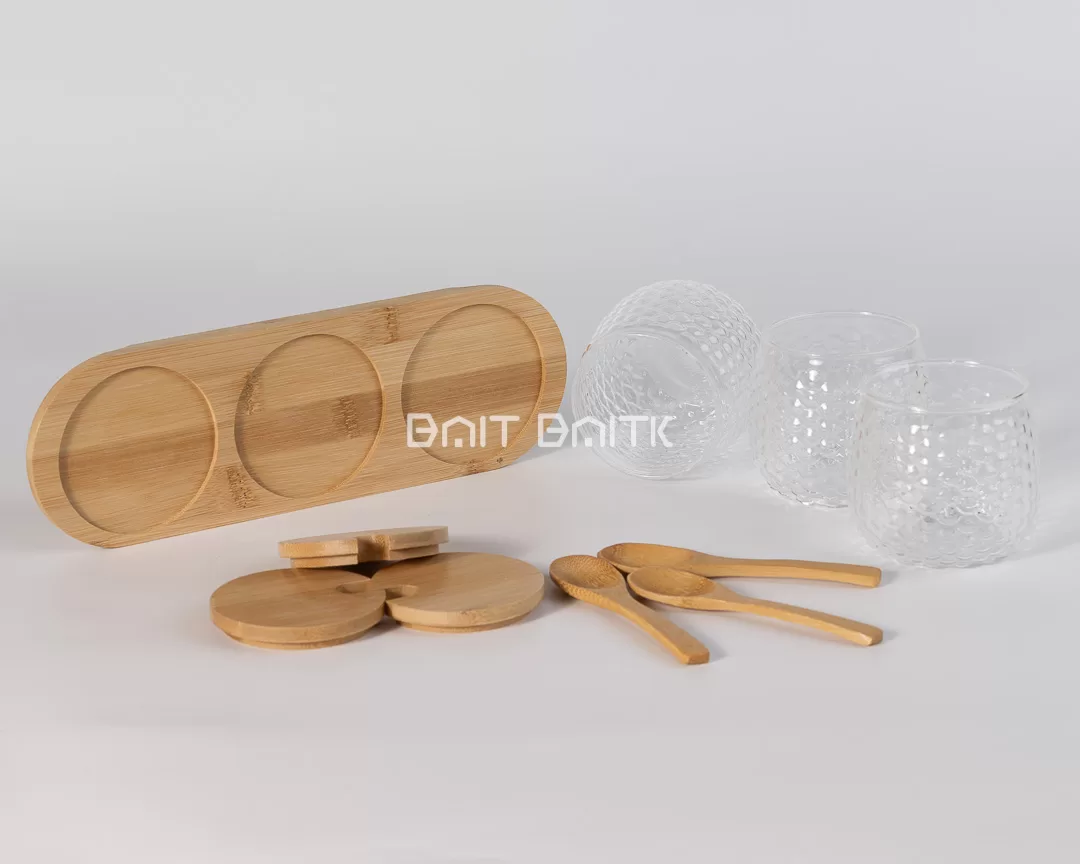 If you love a clean, elegant serving setup, this set is a perfect pick. The mix of glass and bamboo creates a warm, modern look, while the tray keeps everything together for an organized countertop.