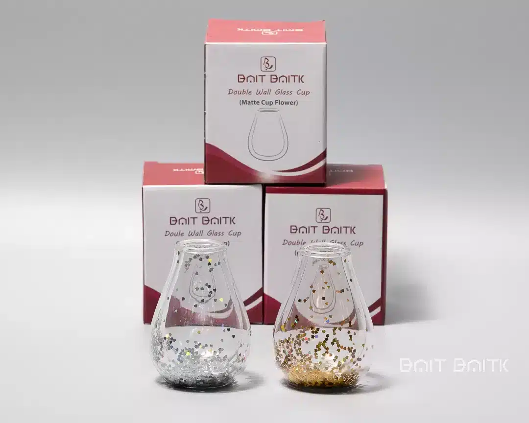 Bait Baitk Double Wall Glass Cup – Heart Glitter (Gold | Silver)