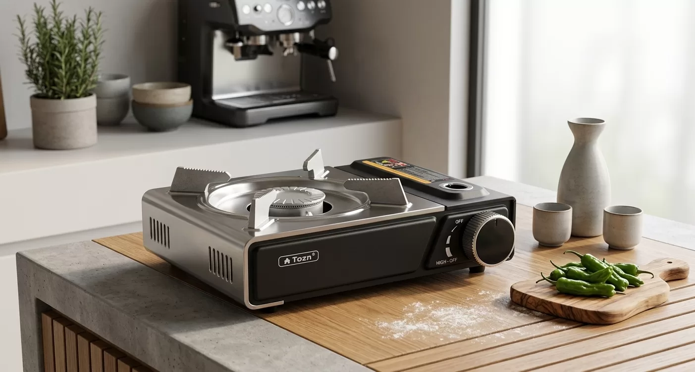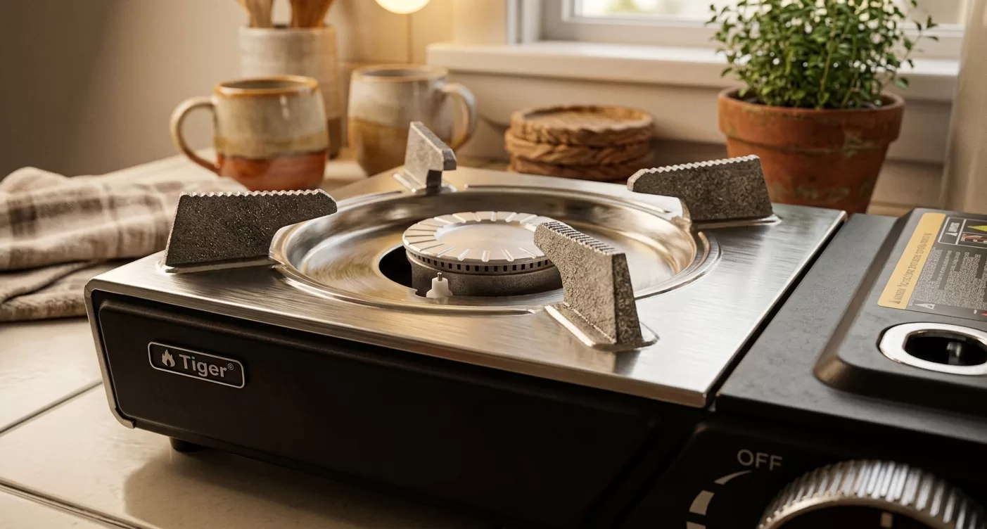 Firstly, this Modern Gas Stove Kitchen model saves valuable space. It fits easily on any countertop surface. It is lightweight yet very stable on the table.