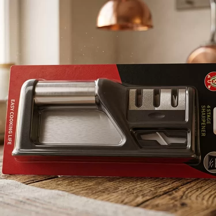 - First, equipped with stainless steel blades providing truly excellent sharpening.