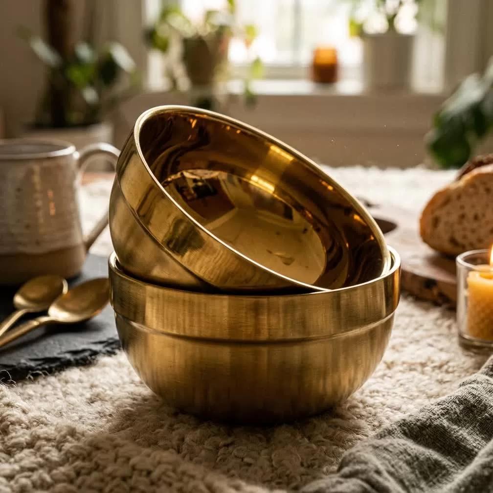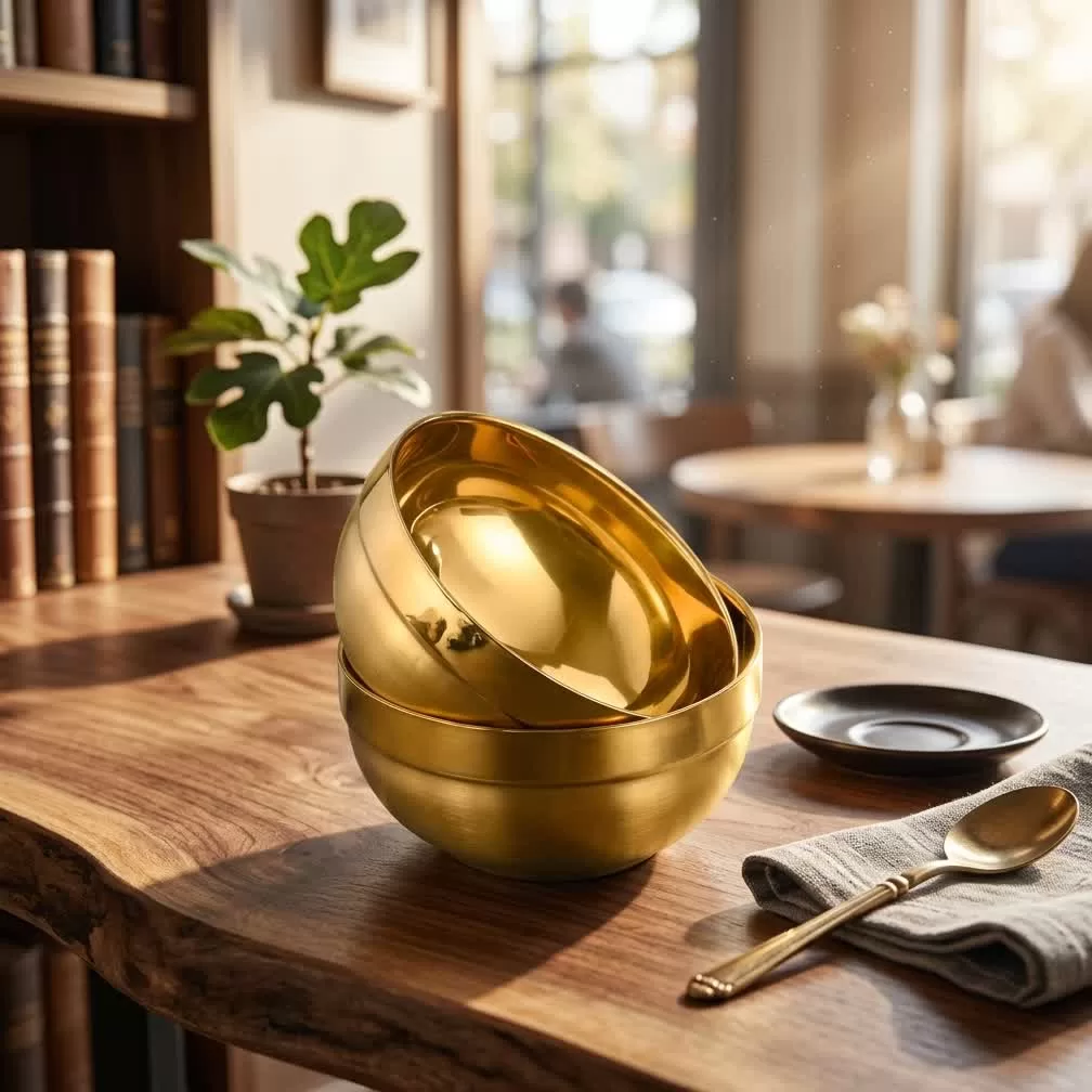 Welcome to the amazing world of luxurious kitchen tools always. Specifically, every cook and professional needs delightful beautiful tools very effectively. Therefore, this luxury gold bowl is your absolutely perfect choice today. First, it features a shiny golden surface adding beautiful aesthetic touch to any dining table setting area. Moreover, it provides you with elegant stunning presentation for all hot dishes perfectly. Consequently, this simple tool significantly improves overall appearance organization of your dining table daily effectiveness. In addition, crafted from durable materials ensuring long-lasting usage life forever. Furthermore, it boasts exceptional ease of cleaning without extra effort.