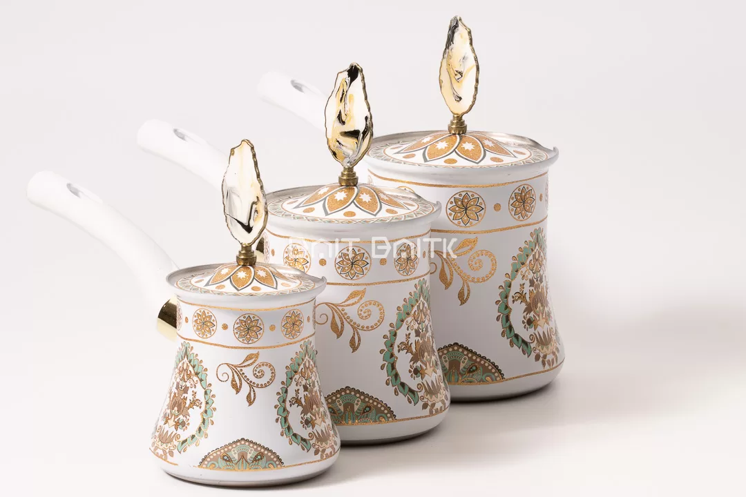 The luxury white Turkish coffee pot set brings bright elegance to your daily coffee ritual.